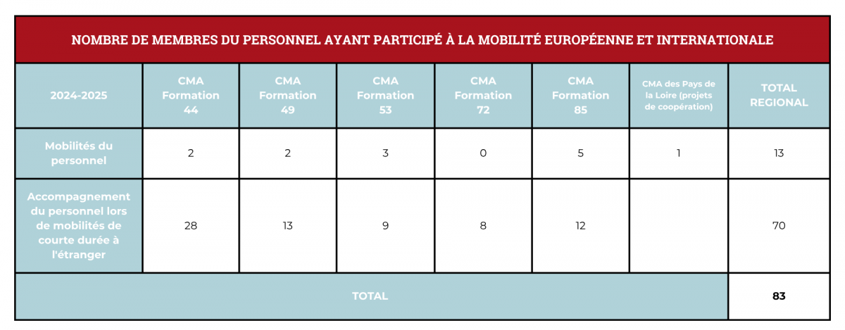 La mobilité internationale pour nos apprenants et personnels en quelques chiffres :