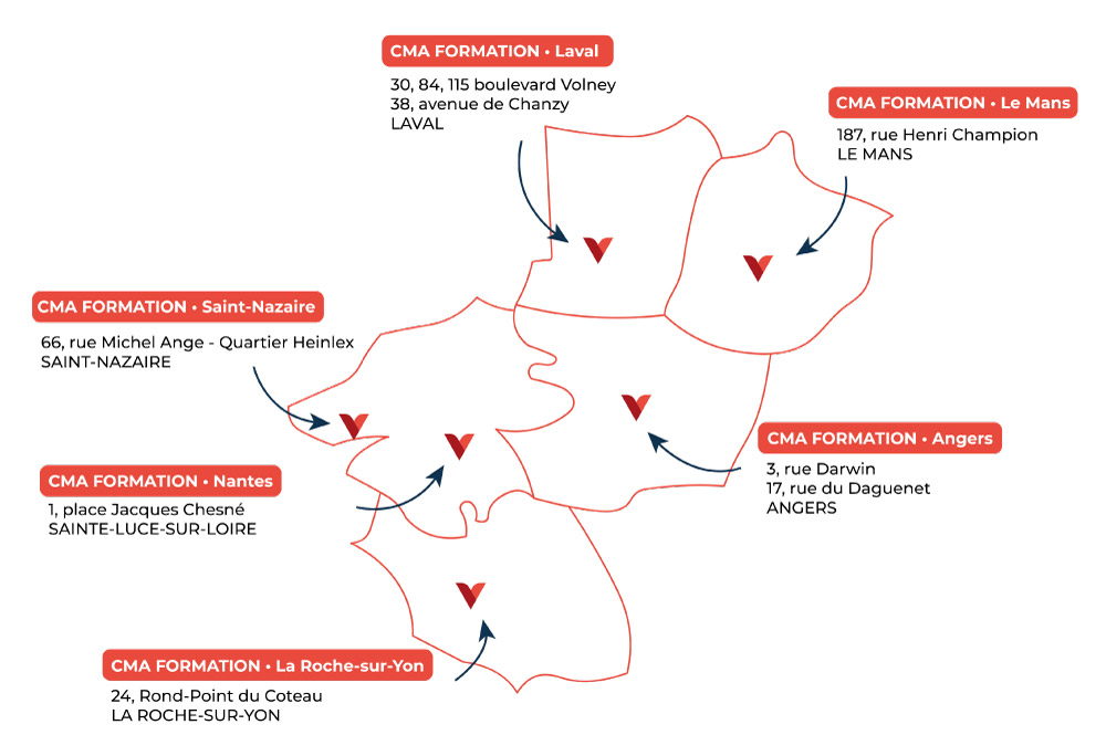 Nantes, Saint-Nazaire, Angers, Laval, Le Mans, La Roche-sur-Yon... Il y a forcément un site de formation près de chez toi !
